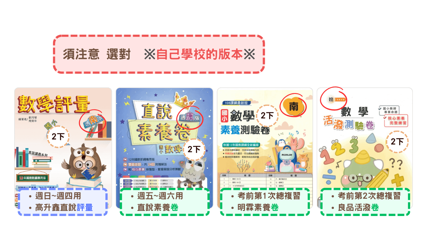 家教班會要用到「1本評量+3本測驗卷」做習題搭配